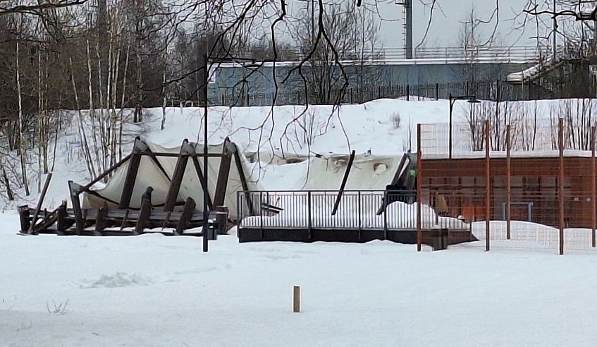 После происшествия представитель Дирекции парков Истры пообещал, что конструкция будет разобрана. Аварийный тент отгородили от любопытных глаз обычной сигнальной лентой, что не особо помешало детям туда лазить.