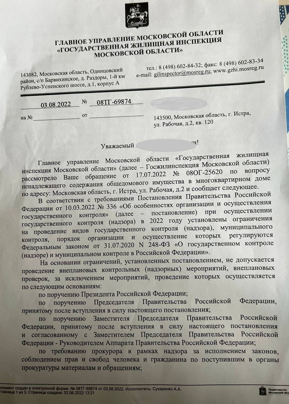 - Ответ от Госжилинспекции получили?