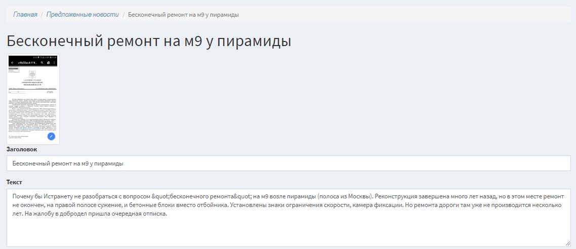 Однако участок в сторону из Москвы до сих пор находится в стадии ремонта. Сужение дороги на 37-м километре Новорижского шоссе создаёт аварийную ситуацию. Водитель, двигающийся по крайней правой полосе, из-за затяжного поворота может не заметить вовремя знак «Ремонтные работы».