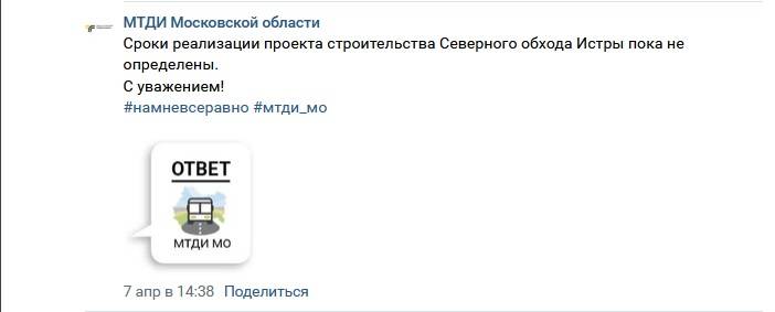 «Северному обходу» Истры утвердили документацию по планировке территории