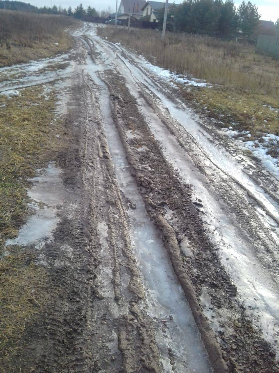 "Жители деревни Качаброво, ул. Полевая вторая линия с трудом подъезжают к своим домам. Если мы раньше буксовали весной и осенью, то в этом году всю зиму! Дорогу (почва на поле), по которой накатанная колея превратилась в трясину, мы преодолеваем, как испытание (смотрите фото).