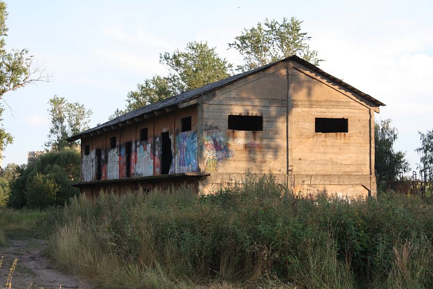 Недалеко от моста хорошо заметна старинная постройка из красного кирпича. Здесь давно нет дверей и окон, и подпорчено строение, увы, не только временем, но и вандалами-граффитистами.