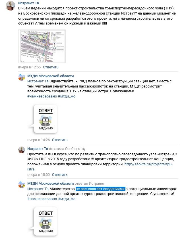 Оказывается, у РЖД планов по реконструкции станции нет. Однако надежду жителям даёт обещание Минтранса: "Учитывая значительный пассажиропоток на станции, МТДИ рассмотрит возможность создания ТПУ на станции Истра".