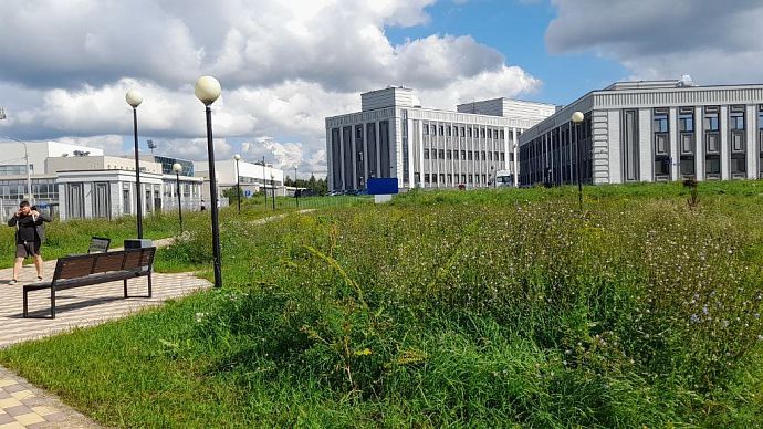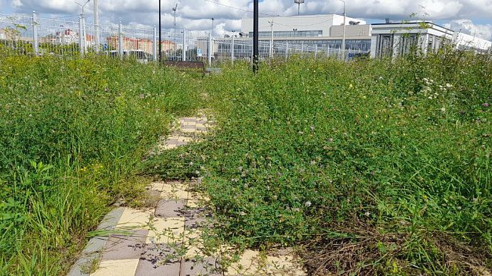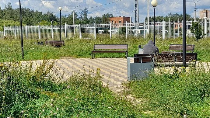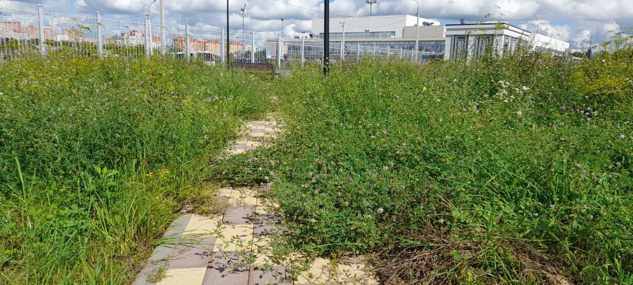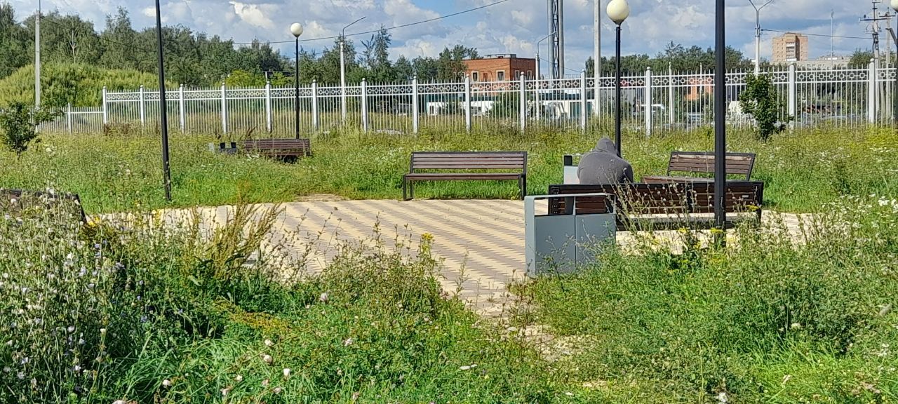 Странным образом территория по факту оказалась окошенной вблизи тротуаров, в целом сквер так и остался погружен в заросли сорняка.