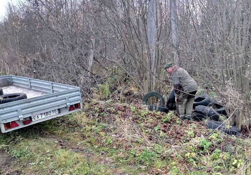 Прибыв на место, лесная охрана обнаружили недалеко от проезжей дороги кучу старых резиновых покрышек. Старший участковый лесничий Иван Новожилов и участковый государственный инспектор по охране леса Юрий Петраков, используя прицеп, вывезли из леса три кубометра мусора для дальнейшей утилизации.