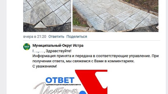 Однако уже вечером местные жители сообщили в комментариях, что тротуар, который сделали в Восточном на ул. Белобородова вблизи дома № 30, сегодня уже можно ремонтировать.