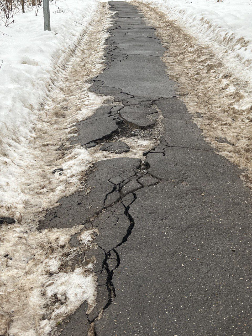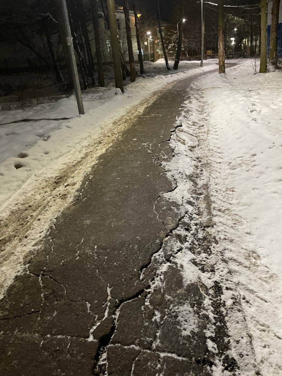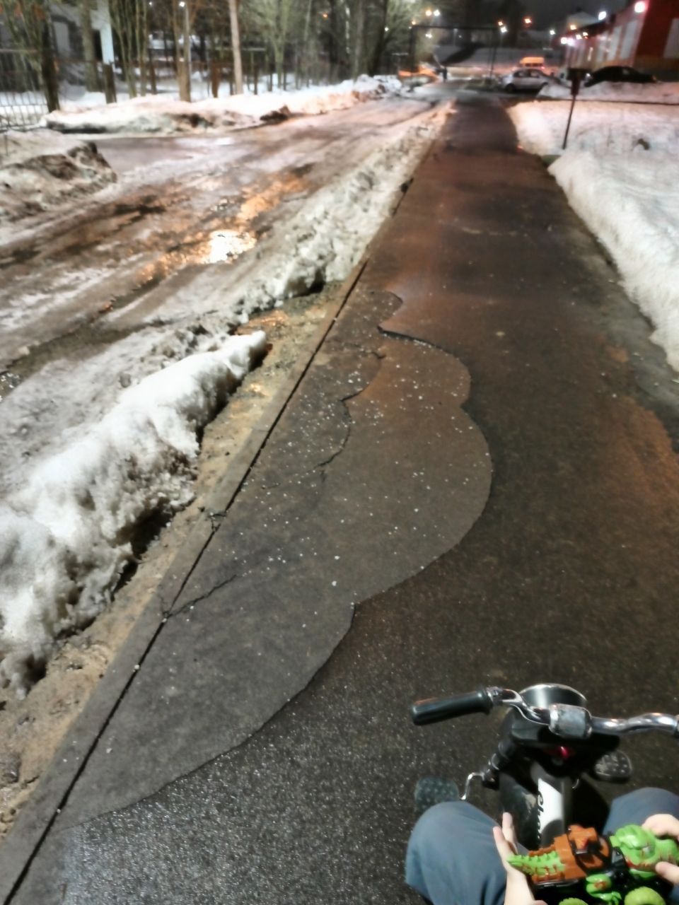 «Что случилось с уборочной техникой в посёлке? Пешеходные дорожки чистят большими тракторами, из-за этого все дорожки побиты по краям. Дорожки мимо домов 2а—13, дорожка от ДК, дорожки в центре посёлка — их только недавно сделали и уже все побили тяжёлой техникой.