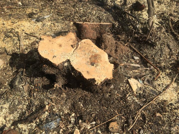 Это произошло несколько дней назад. Всего было срублено около десяти деревьев. Однако точное количество подсчитать трудно, поскольку в каждой точке вырубки росло сразу несколько стволов, что видно по оставшимся пенькам.