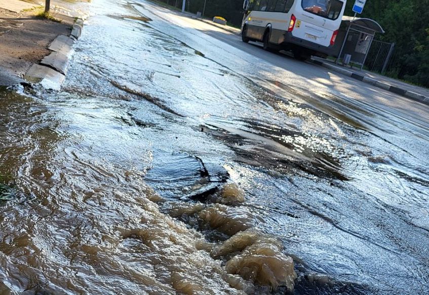 В Дедовске в очередной раз прямо на дороге забил гейзер