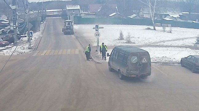 Видимость кропотливой и ответственной работы можно было наблюдать сегодня: песок с солью, которыми посыпали дорогу зимой, смели на газоны — сначала техникой, а остатки докидали с помощью лопат.