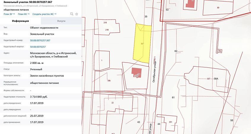 В Глебовском предлагают в аренду земельный участок под организацию общественного питания