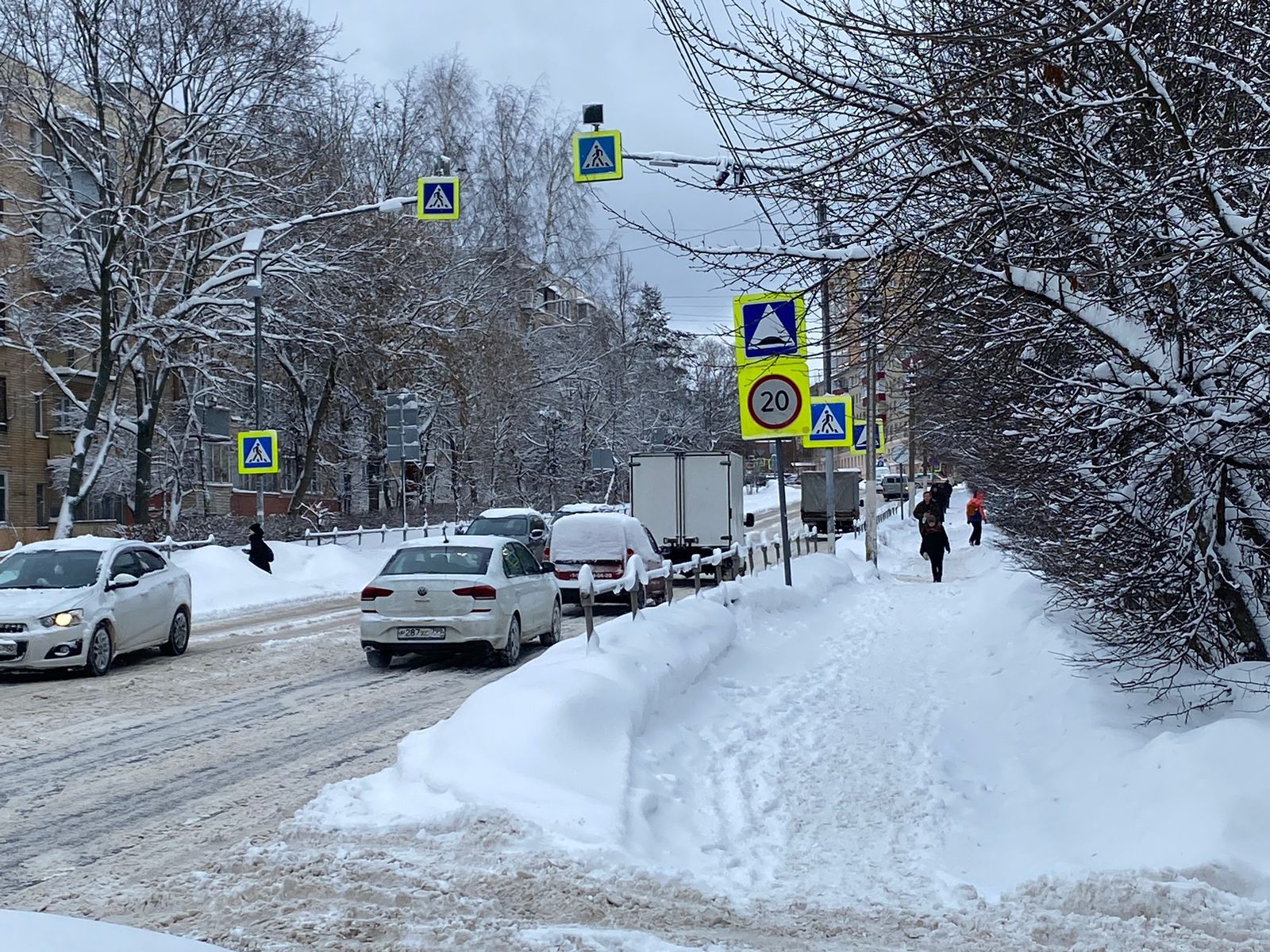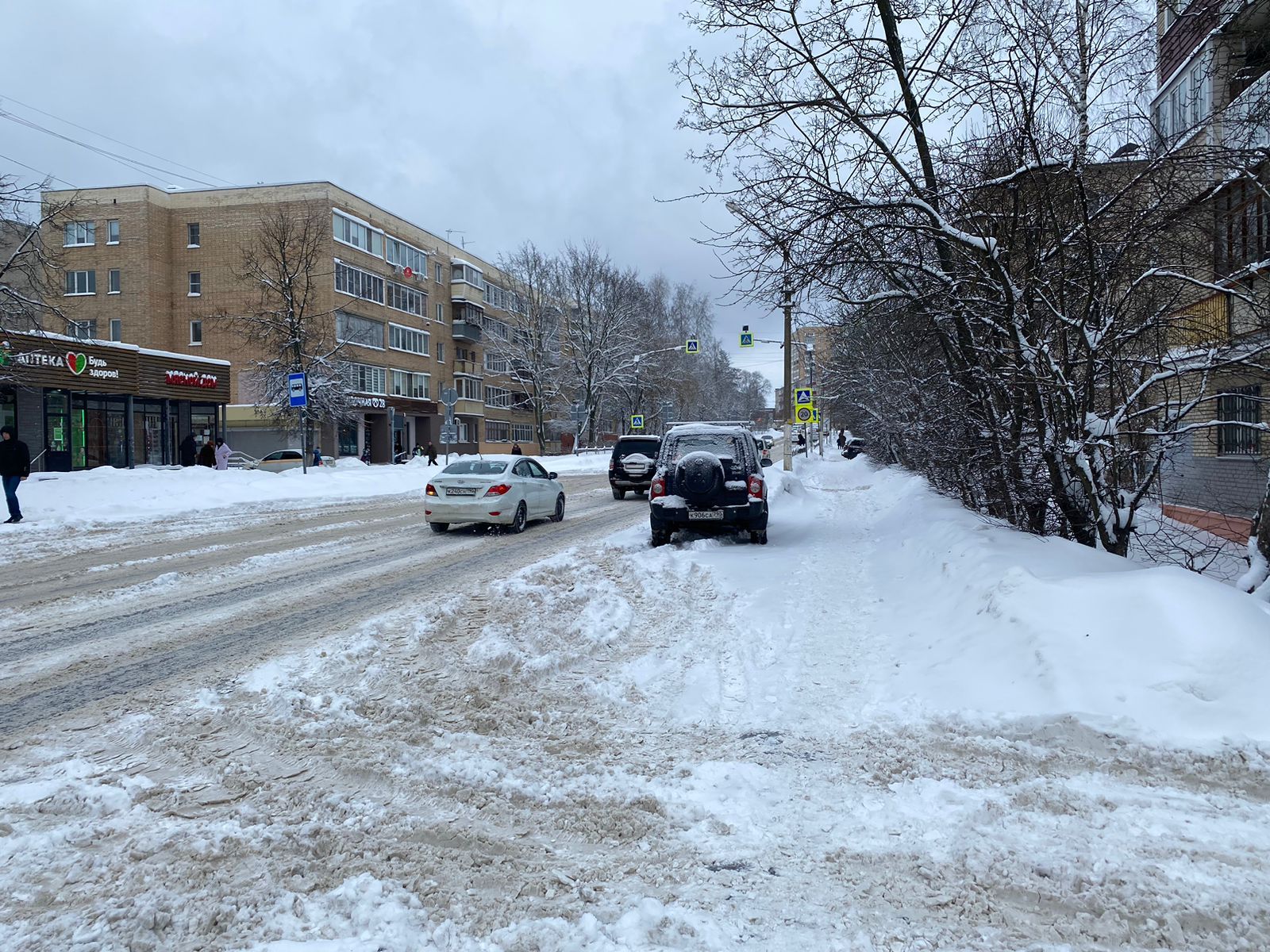 А тем временем даже на центральных дорогах Истры дороги опасно заужены. Машины, передвигающиеся во встречном направлении, вынуждены уступать друг другу, большегрузы и автобусы — лавировать, выбирая безопасный маршрут.