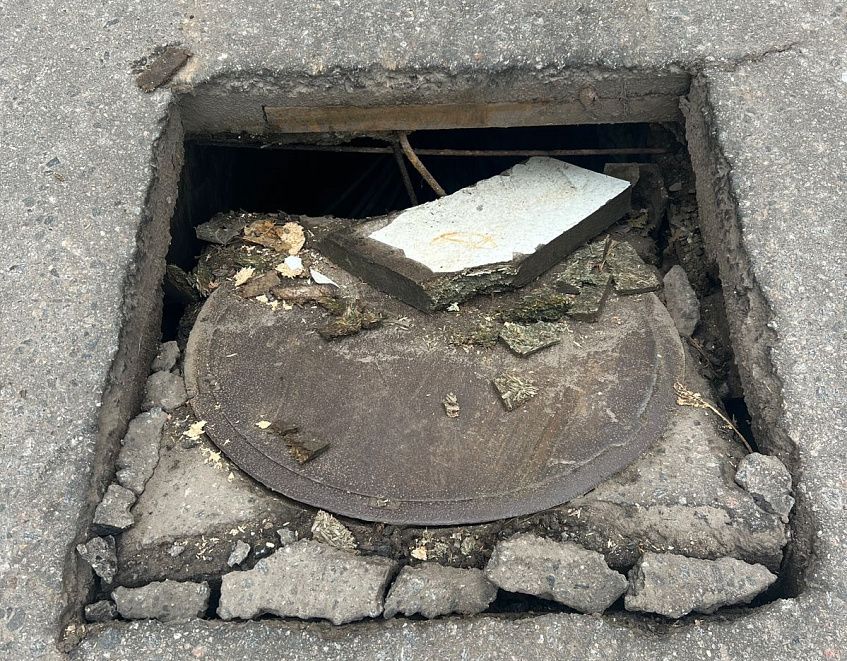 просили заделать несколько недель, несмотря на то что люк находится в непосредственной близости от учебного заведения города.