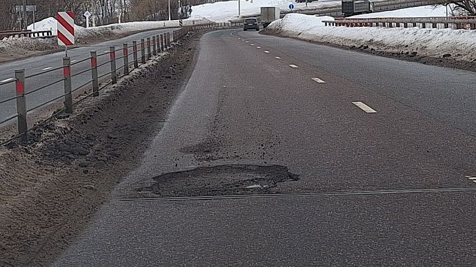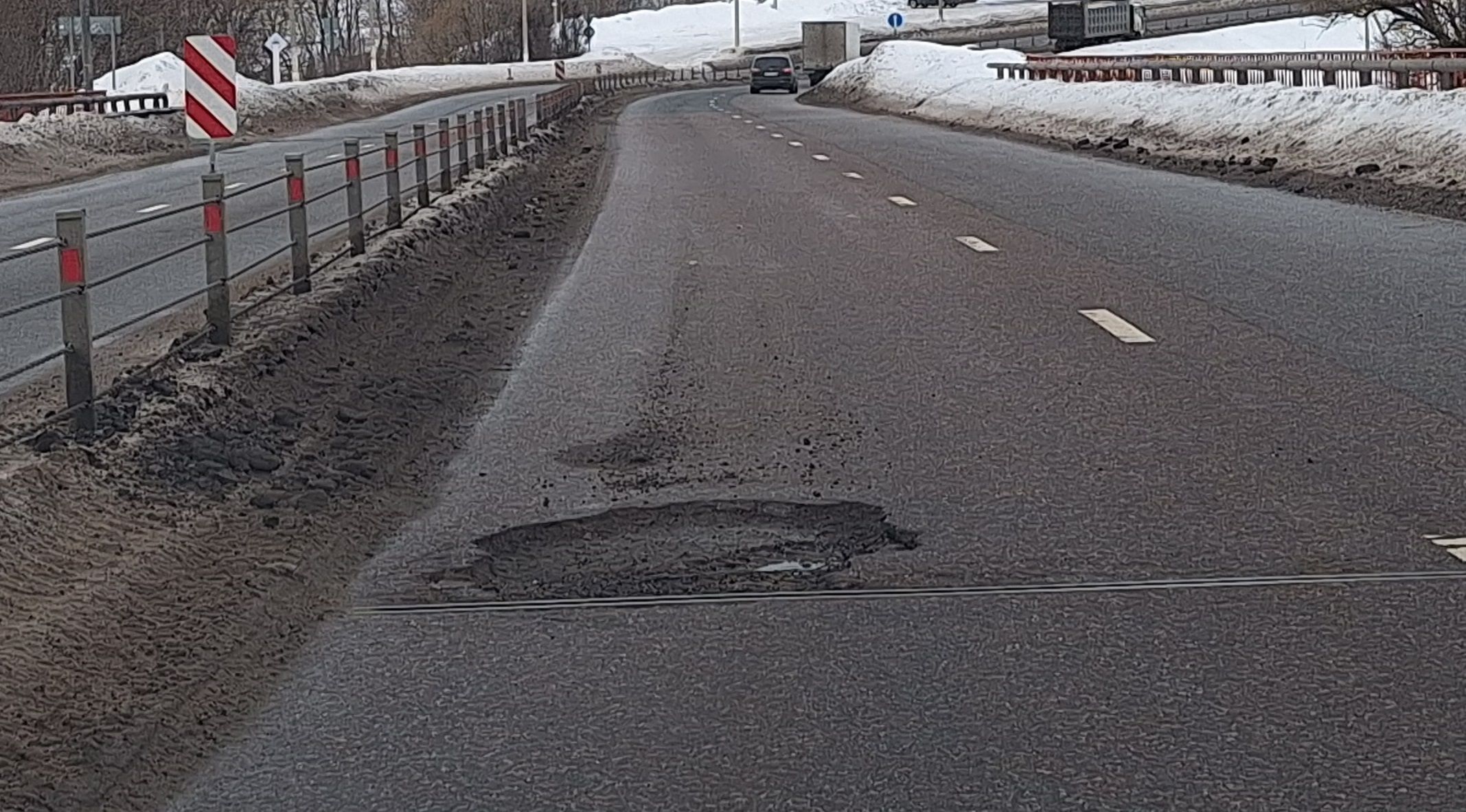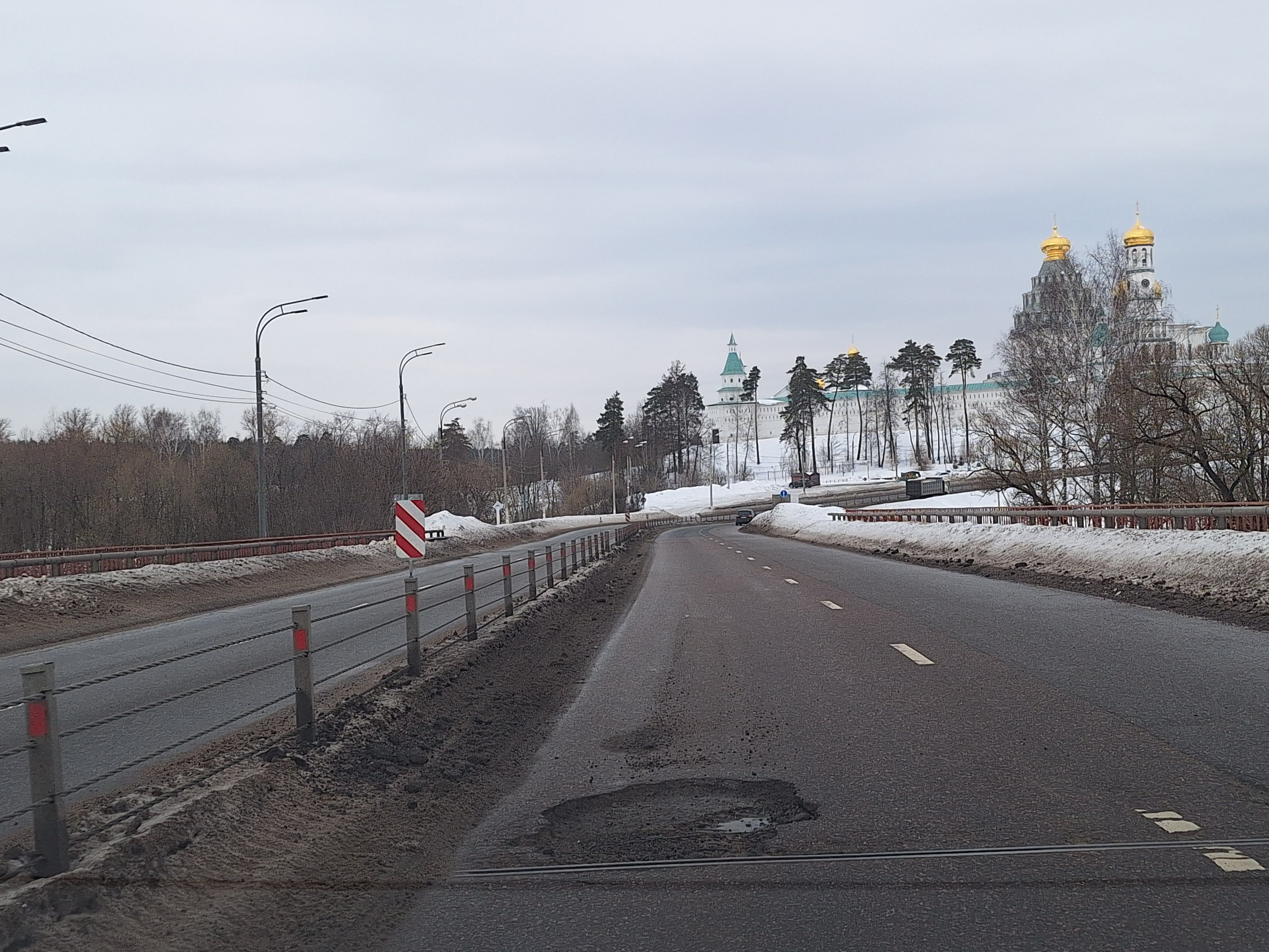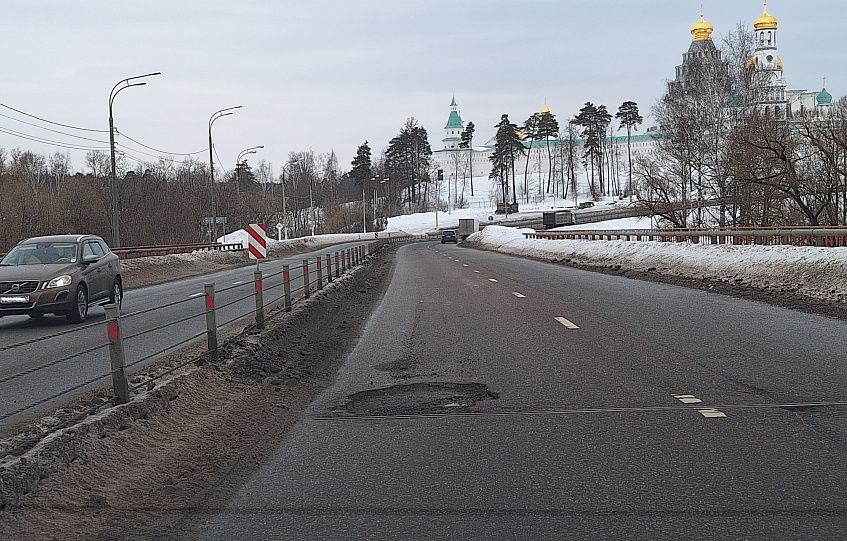 Оттепель обнажила глубокие ямы на дорогах Истры