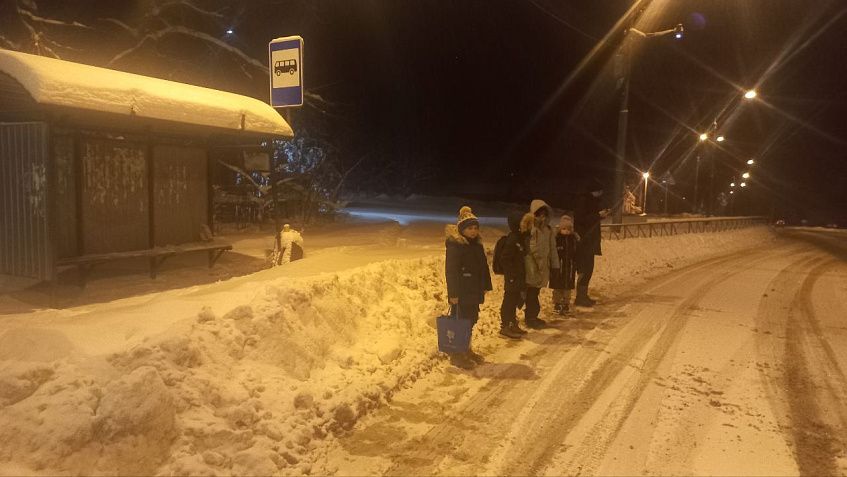 В Пречистом дети ждут автобус, стоя на трассе кольцевой автодороги