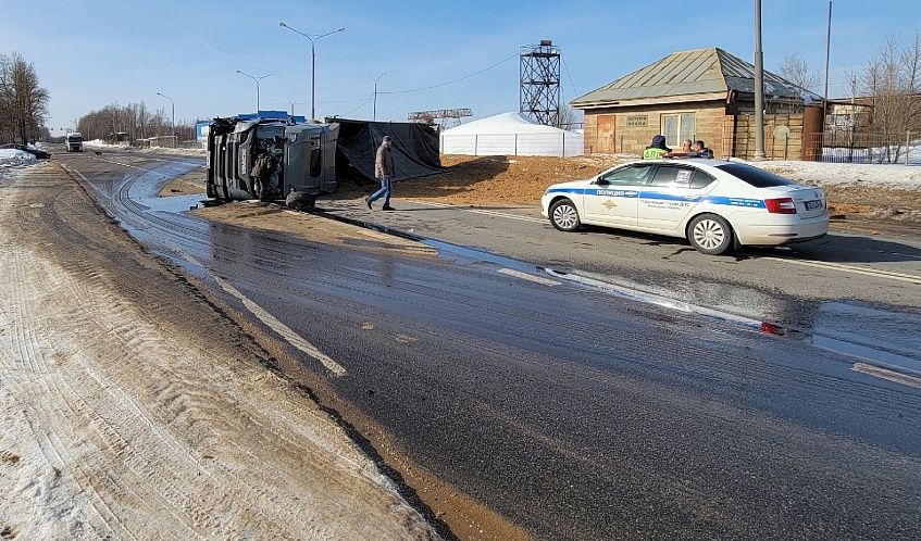Вблизи Алексеевки второй раз за месяц опрокинулся грузовик