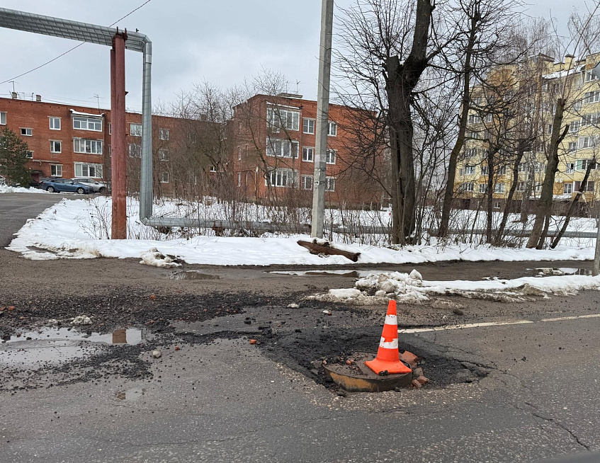 Дело в том, что асфальт проваливается вокруг люка колодца. Снегирёвцы считают, что это происходит из-за неисправности подземных коммуникаций.