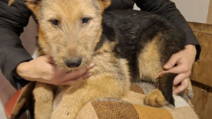 Щенки — метисы эрдельтерьера, им месяца четыре. В будущем они вырастут до 20–25 кг.