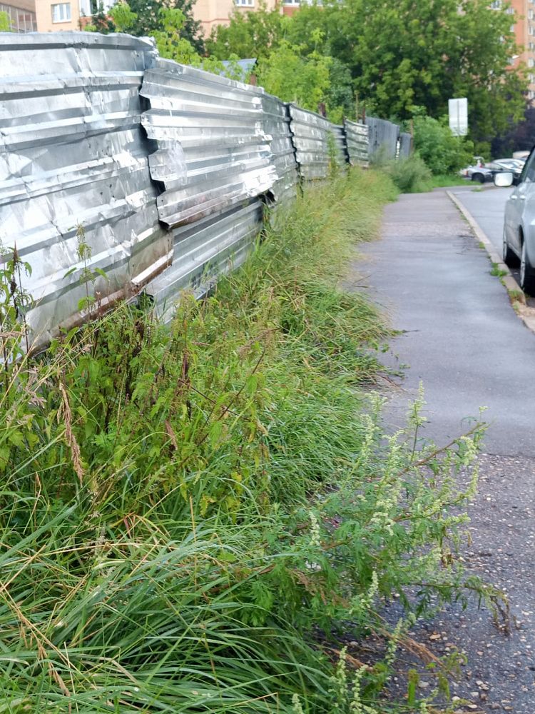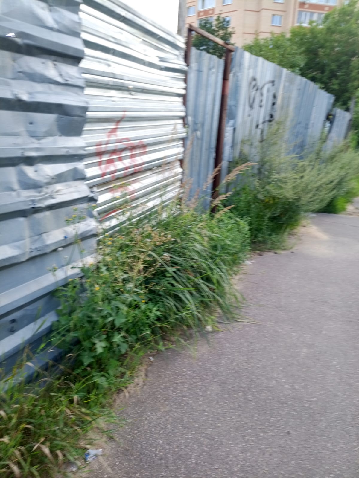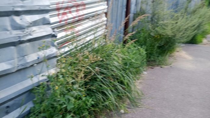 Тротуар, ведущий к детскому саду «Кораблик» на улице Морозова, наполовину скрыт под сорняками. В непосредственной близости от него расположен покореженный страшный забор. Данный факт пугает родителей: забор может в любой момент упасть, в том числе на ребёнка.