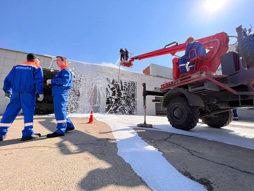 По легенде учений, на территорию производственной базы предприятия упал беспилотный летательный аппарат, в результате чего произошло возгорание.