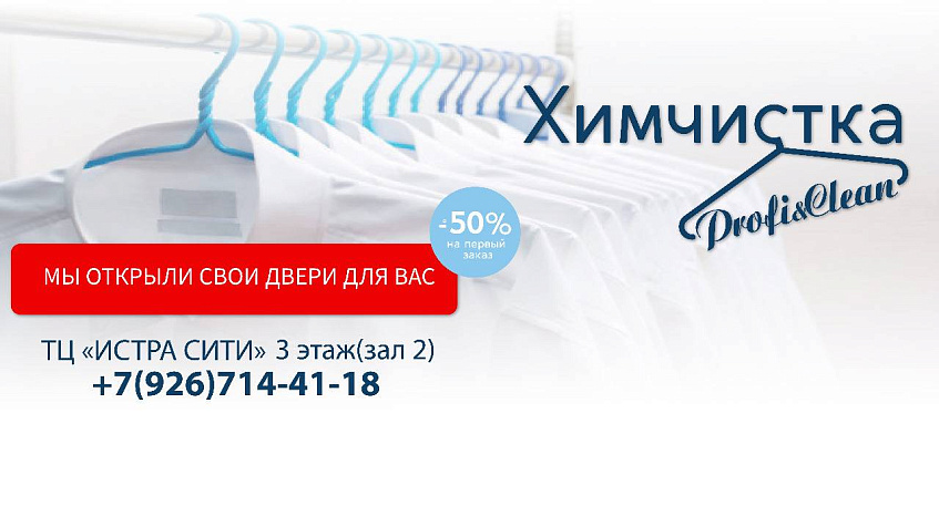 С первого дня весны начал работу новый приёмный пункт химчистки «Profi&Clean». Он расположен в центре Истры, на 3 этаже ТЦ «Истра-Сити».