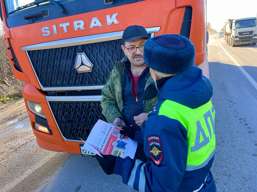 Водителям грузовых автомобилей сотрудники полиции указывают на необходимость соблюдения скоростного режима, режиме сна и отдыха, недопустимости использования мобильного телефона за рулем, должной концентрации внимания на дороге.