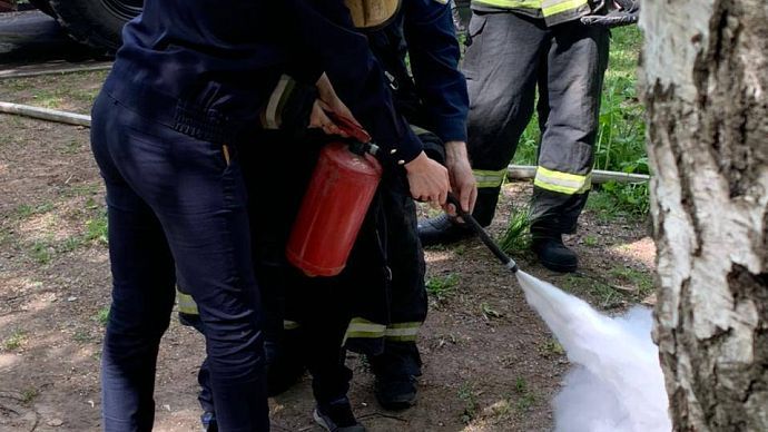 Далее ребятам показали огнетушитель обьяснили как им воспользоваться, желающие смогли испытать самостоятельно ОП в деле. Больше всего детей заинтересовала работа пожарной машины, учащимся показали работу пожарных рукавов и лафетного ствола. К концу занятия дети осматривали пожарную машину, желающие смогли посидеть в кабине.