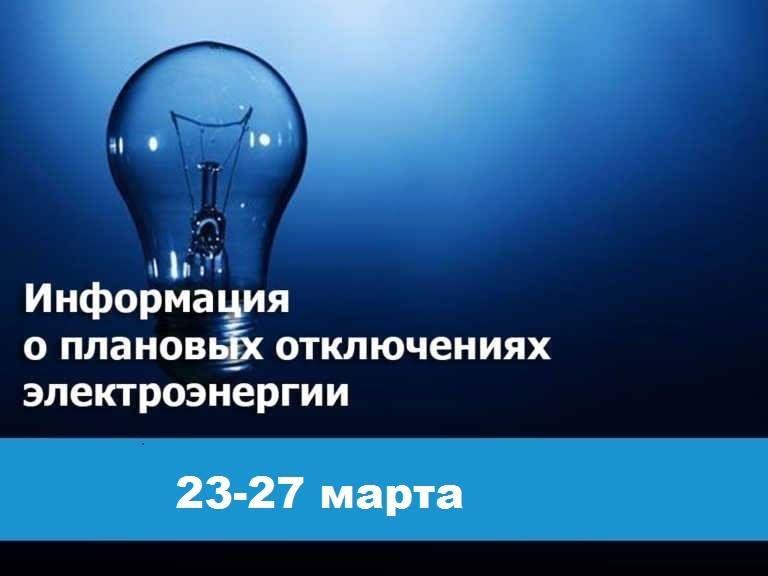 Плановые отключения электроэнергии с 23 по 27 марта