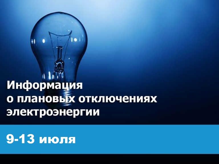 Плановые отключения электроэнергии с 9 по 13 июля