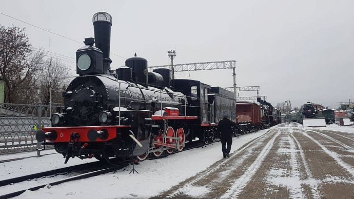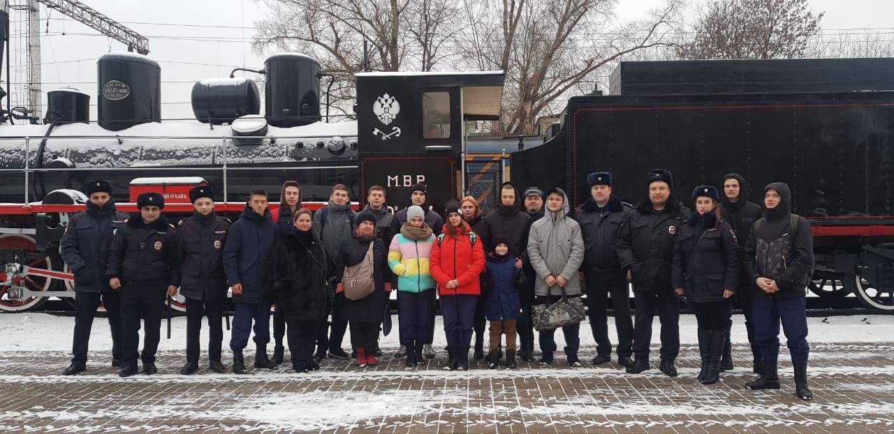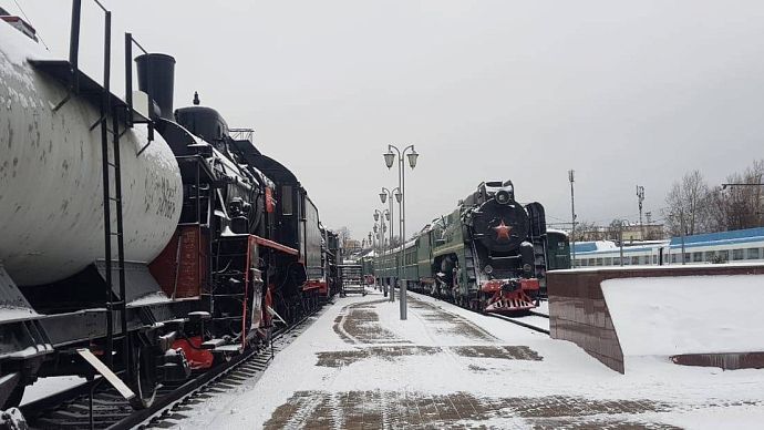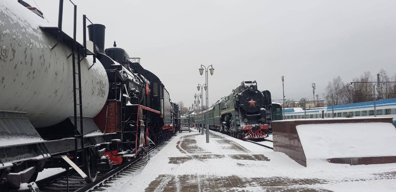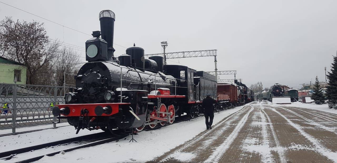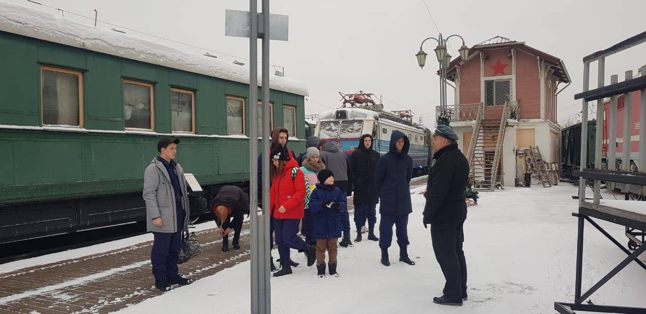 Здесь под открытым небом студенты 1 курса увидели более 60 различных экспонатов, в том числе 12 паровозов, 10 тепловозов, 7 электровозов, 3 салон-вагона, 2 санитарных вагона, теплушку, снегализированную ж/д технику, паровозную гидроколонну, действующий макет ж/д переезда с УЗП в натуральную величину и отечественные скоростные поезда Р-200 и Сокол.