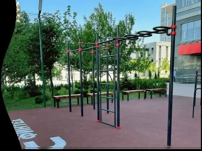 фитнес-зоны. Такие площадки встречаются редко, потому что они больше напоминают зал. Хотя некоторые мини-тренажеры встречаются, например, профессиональные турники.