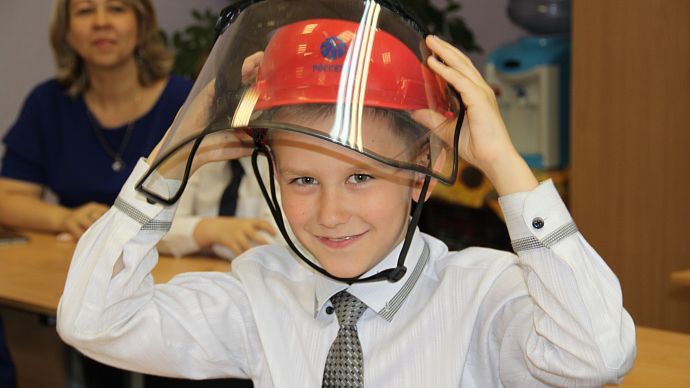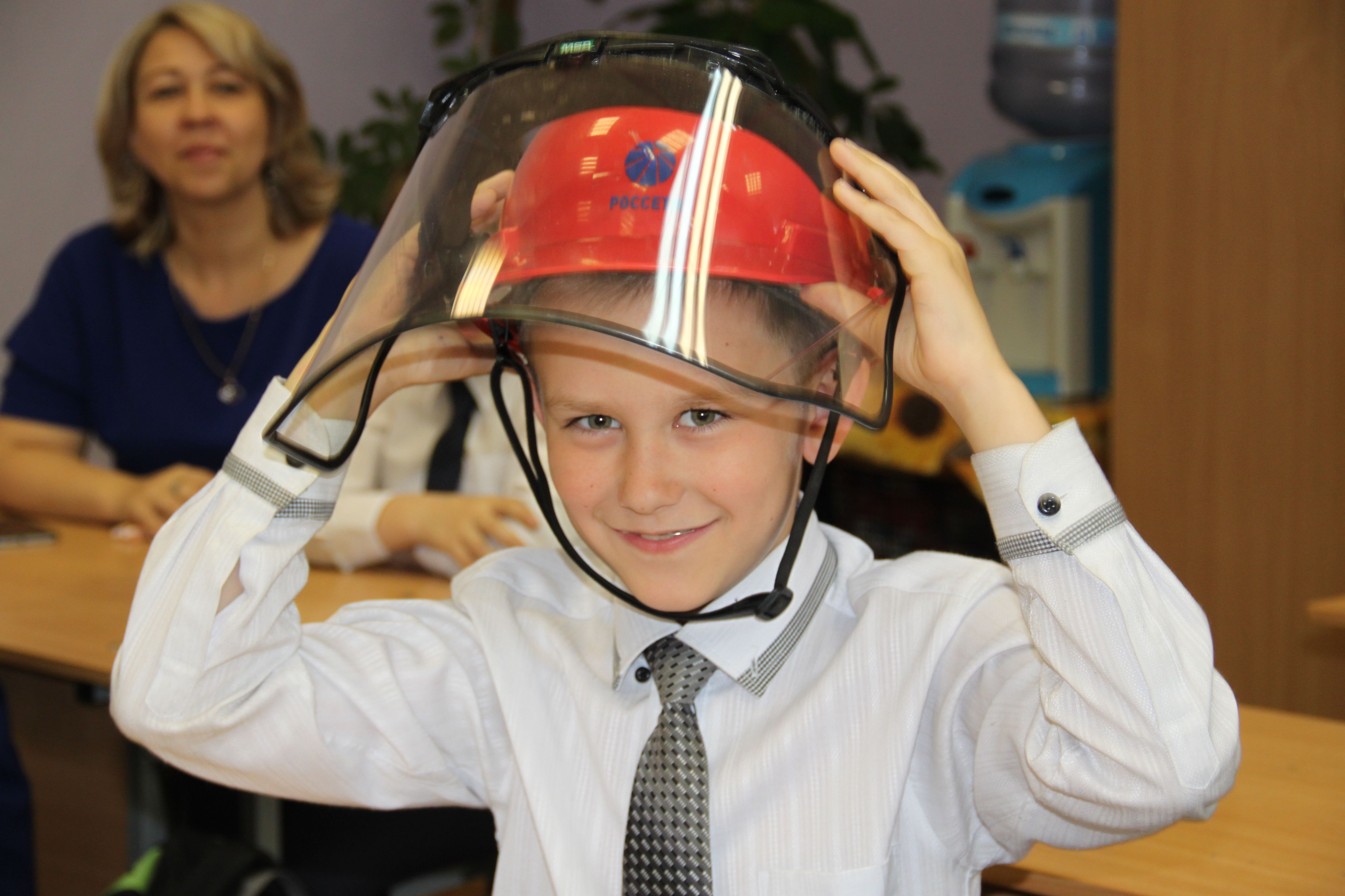 Помимо этого ребята узнали, почему энергетики в своей работе используют специальную одежду. Более того каждому желающему было предложено примерить перчатки и каску электромонтера.