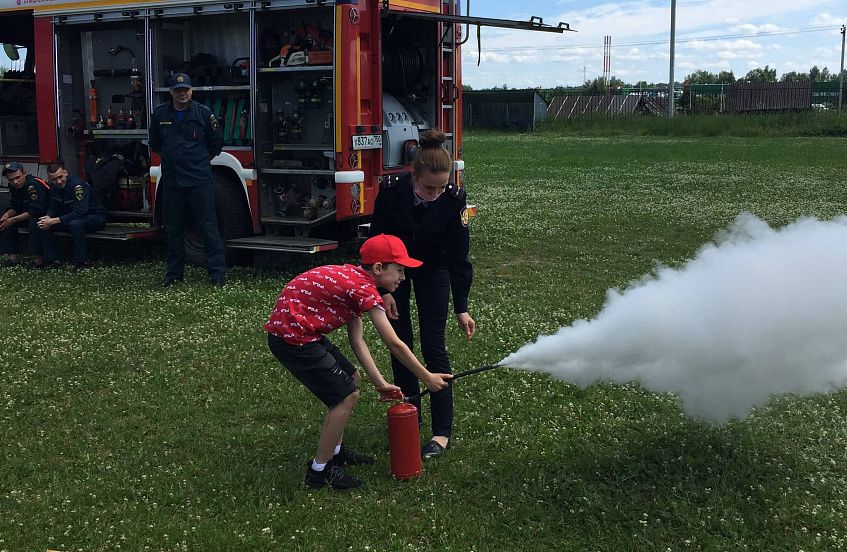 Ребятам рассказали о правилах пожарной безопасности в летний период, обьяснили и научили пользоваться огнетушителем, к концу занятия ребятам показали работу пожарной машины. Далее всем детям подарили сувениры с символикой ВДПО и сделали общее фото.