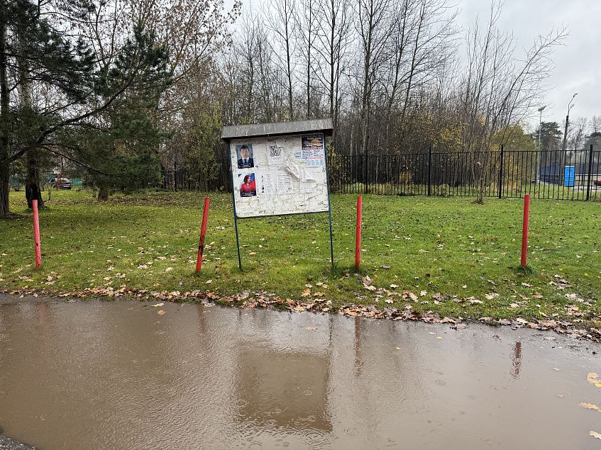 Желающим ознакомиться с официальной информацией и попасть на муниципальный спортивный объект придётся преодолеть водную преграду.
