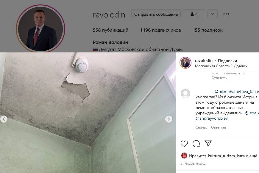 "Отрабатываем коллективное обращение родителей. По обогревателям (для мытья посуды) решим на следующей неделе. Касательно ремонта потолков (осыпается штукатурка) и батарей (часть не нагревается) обсудим с администрацией", —сделал выводы по итогам своего визита парламентарий.