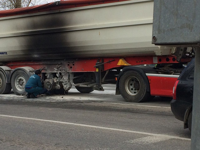 Фура загорелась в центре Истры