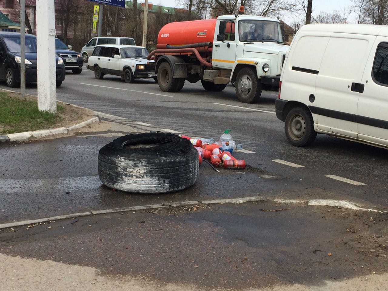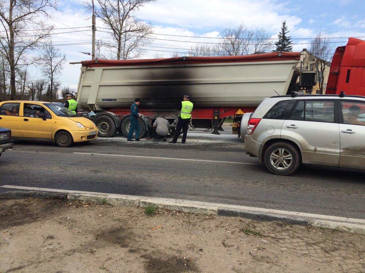 Сегодня в районе 12 часов у светофора на улице Советская, напротив школы им. А.П. Чехова, произошло возгорание фуры. На место происшествия оперативно выехали сотрудники истринской пожарной части № 60.