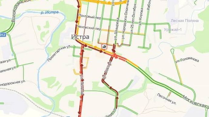 Сложности также традиционно наблюдаются в районе железнодорожного переезда. На Волоколамском шоссе причиной затора стало дорожное происшествие.