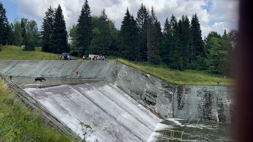 Ключевым моментом операции стало регулирование водного потока. Увеличив напор воды, специалисты направили лося к безопасному спуску. Когда животное оказалось в воде, напор уменьшили, но возникла новая проблема — лось запутался в канатах. К счастью, ему удалось освободиться и добраться до берега.