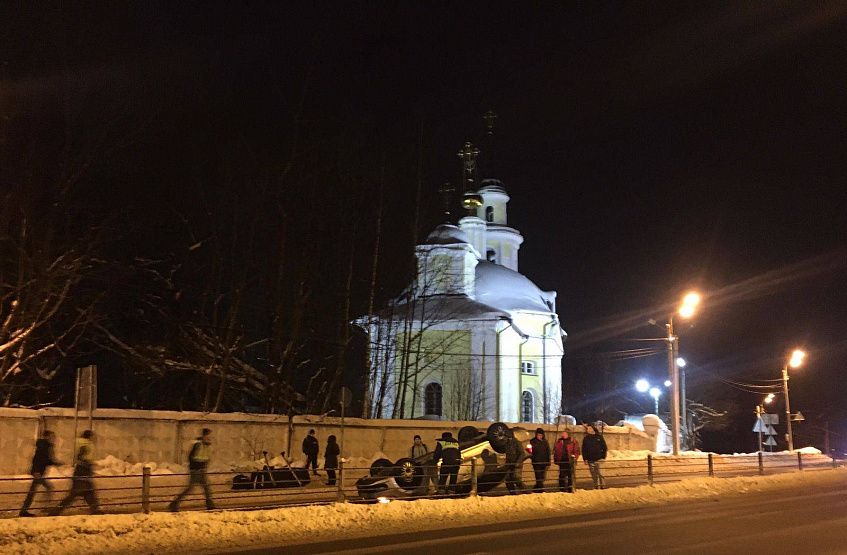 Легковушка перевернулась на Волоколамском шоссе возле церкви в деревне Садки. Авария произошла 4 января около 19 часов.