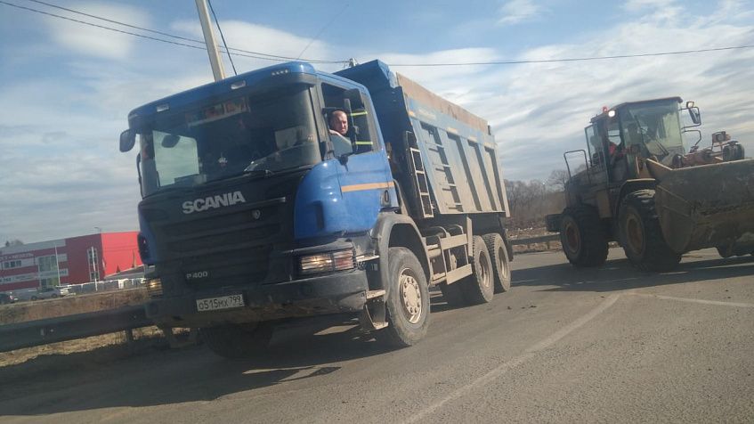 На проезжую часть высыпалось несколько тонн земли вперемешку с крупными камнями. Судя по всему, борт большегруза, перевозившего в открытом кузове грунт, не выдержал.