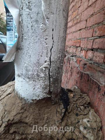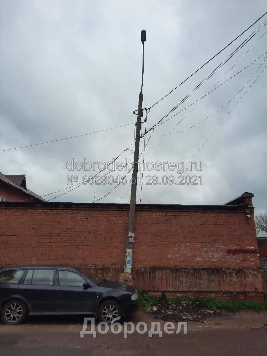 "На протяжении нескольких дней, проходя по обычному маршруту, наблюдаю , что столб наклоняется всё больше и больше, и при таких погодных условиях скоро упадёт! Также от этого столба висят оголённые провода, подключенные к другому столбу, который вот-вот отвалится, так как он сломанный. При дожде провода искрят! Очень опасная ситуация, пожалуйста, примите меры, так как это проходная и проезжая часть, на которой ходят люди и ездят машины!" — такое сообщение опубликовано на портале "Добродел" ещё в конце сентября.