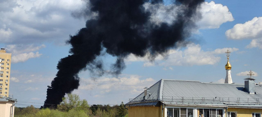 Со всех точек города виден огромный столб чёрного дыма.