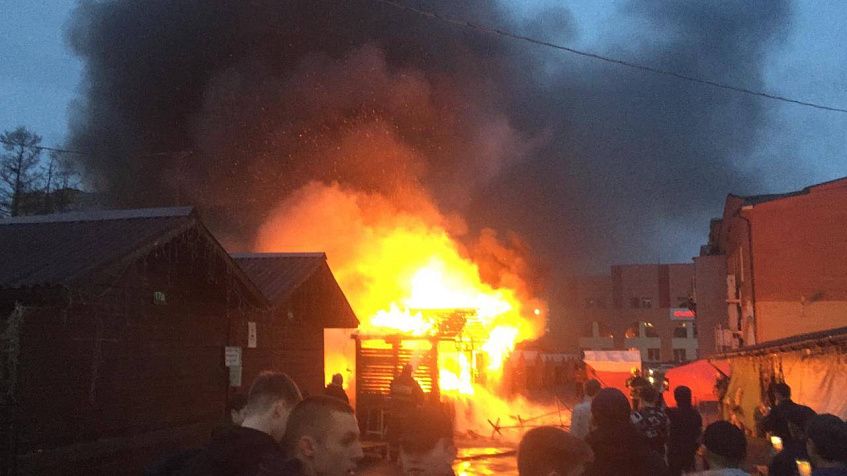 Очевидцы рассказывают, что возгорание на территории городского рынка произошло неожиданно. Горят торговые палатки. О пострадавших ничего не сообщается. Подробности уточняются.