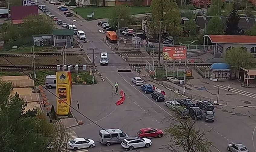 Очевидцы сообщают о километровых пробках, которые растянулись по обе стороны от железнодорожного переезда в Истре.