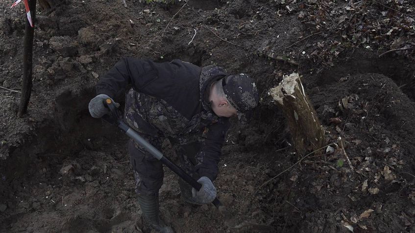 Местные жители полагали, что это останки солдат Красной Армии, но в процессе работ поисковики нашли немецкие погоны, личные вещи и половинку жетона...
