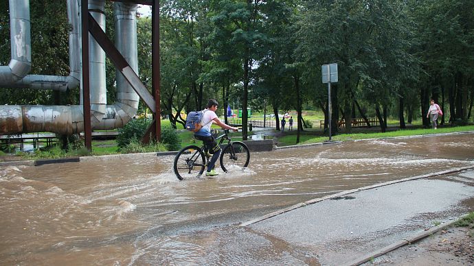 В Москве, на главной метеостанции столицы ВДНХ, за сегодняшний день выпало 43 мм осадков — это больше половины (55 %) от месячной нормы августа! И это при том, что прошедшие до этого 19 дней месяца принесли всего 12 мм дождя (15 % от положенного за август). На других метеостанциях столицы выпало от 1 мм во Внуково до 19 мм в Тушино.