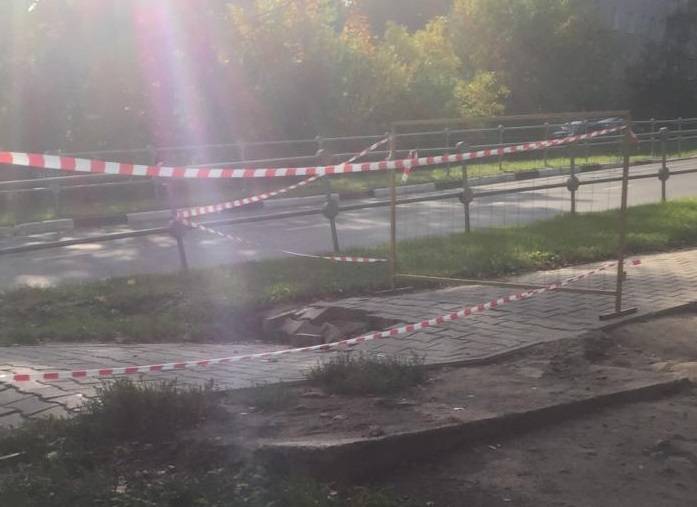 Житель Истры, спеша на утреннюю электричку, едва не провалился сквозь землю. Тротуар, расположенный на ул.Юбилейный проезд в Истре , в один момент ушёл из под ног.