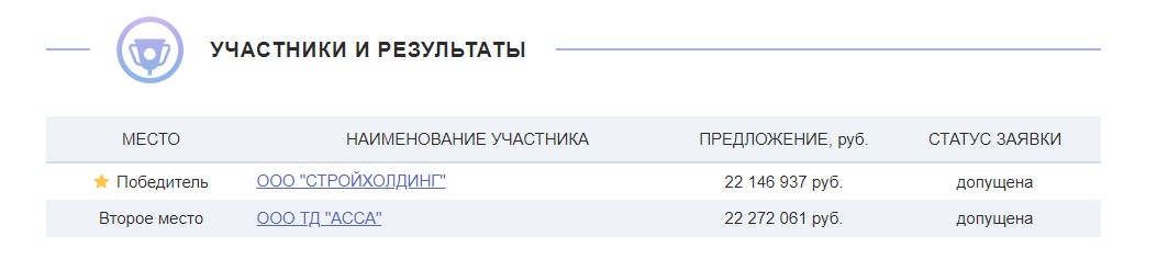 Победителем электронного аукциона на выполнение работ по благоустройству сквера стала московская компания ООО «СТРОЙХОЛДИНГ», на втором месте — истринская компания ООО ТД «АССА». Из информации на странице тендера следует, что «СТРОЙХОЛДИНГ» предложила сумму, меньшую на 126 тысяч рублей — 22 146 937 рублей, поэтому победа ушла к данной компании.