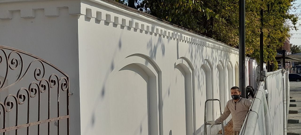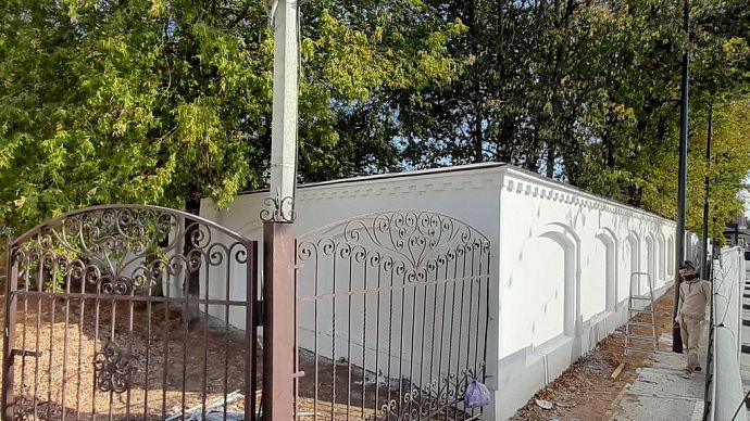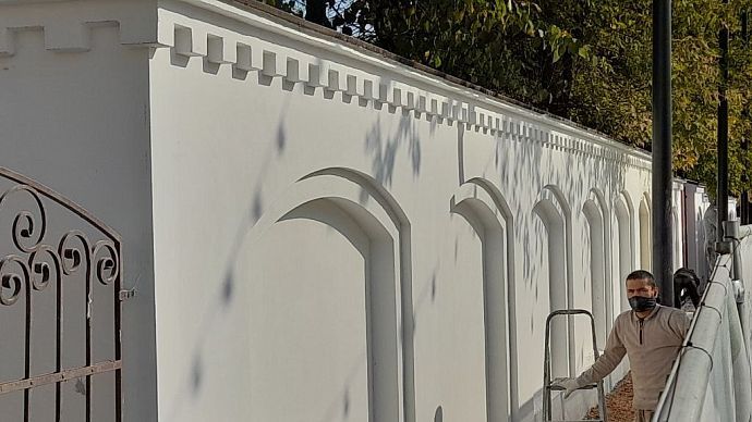 В настоящее время рабочие приступили непосредственно к выполнению работ по отделке декоративной штукатуркой ограждения ВЗУ № 1, расположенного по адресу: г. Истра, ул. Урицкого, д. 1. Данные работы обошлись бюджету в